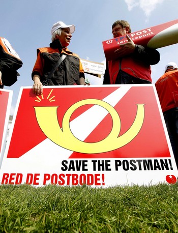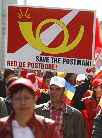 Több ezren, elsősorban postai dolgozók tüntettek Brüsszelben, követelve az Európai Bizottságtól, hogy azonnal rendeljen el moratóriumot azon irányelv végrehajtására, amely Európa-szerte megnyitná az utat a postaszolgálatok privatizációja előtt.